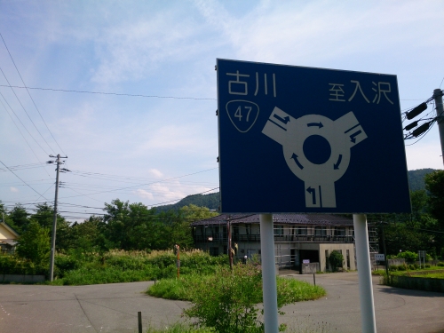 帰りがけ鳴子の別荘地の真ん中で、免許更新の講習で教わったばかりの「環状交差点」を発見。