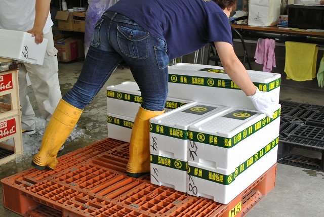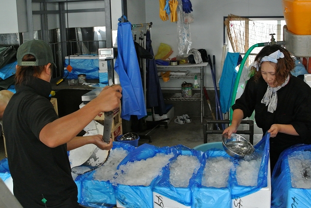 カツオの箱詰めから出荷の様子も直に見ることができ