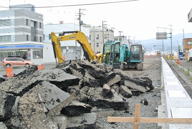 現在港町の県道かさ上げ工事が急ピッチで進められています。