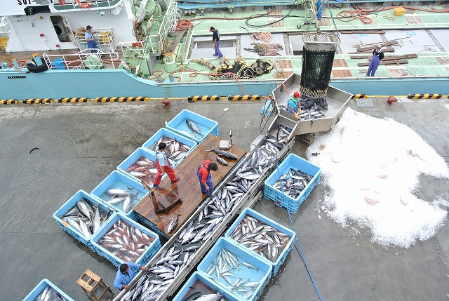 カツオの水揚げの様子や、箱詰め作業の様子なんかが