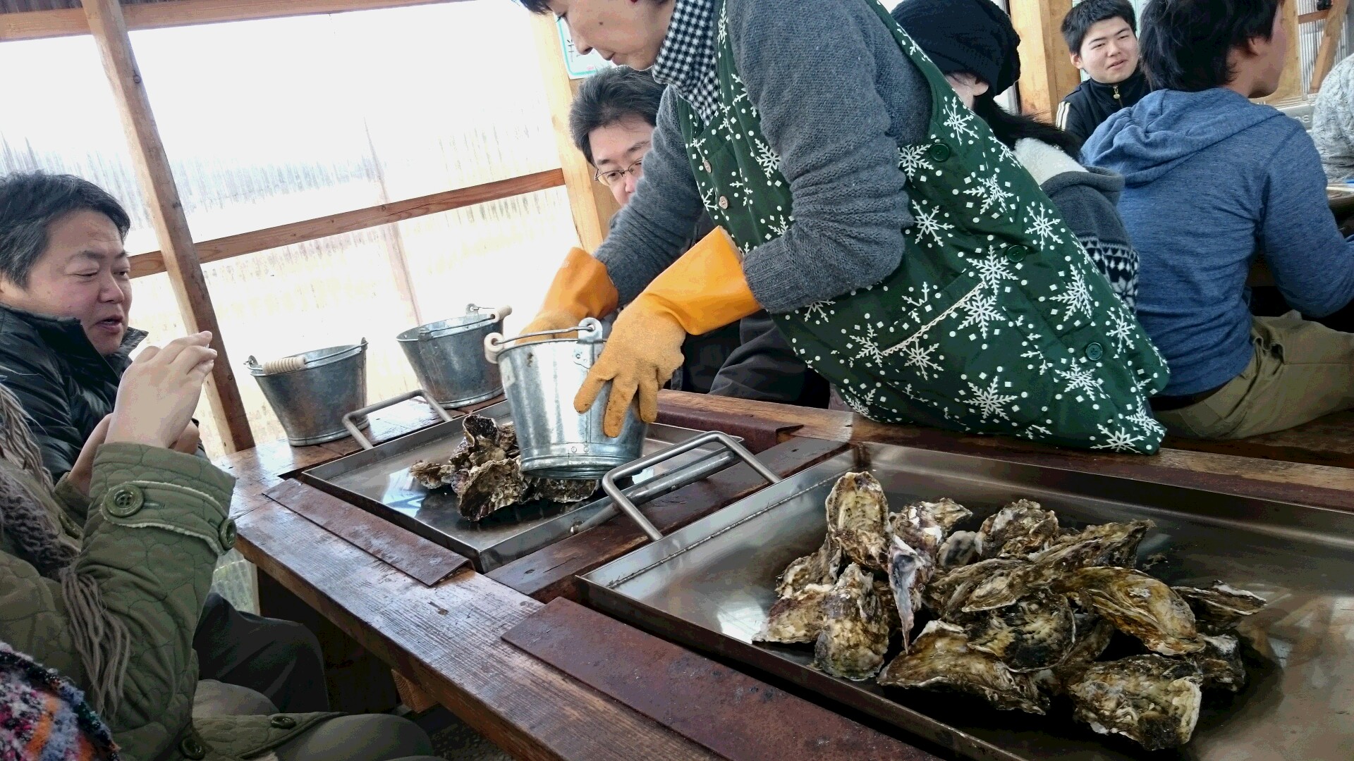 ツアー終了後は、近くの「かき小屋」に移動して、豪快な焼き牡蠣。