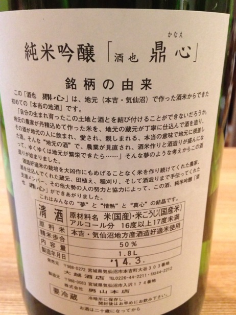 お酒は、角星の水鳥記第4章と、男山の「鼎心」。鼎心は、本吉町大谷の方が中心になって、米づくりを行った酒です。