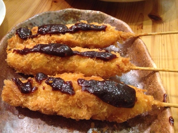 こちらは、サメの串揚げ!ふわふわの肉なので、揚げたてが非常に美味でした。ミソ以外にも、色んなタレが合いそう。