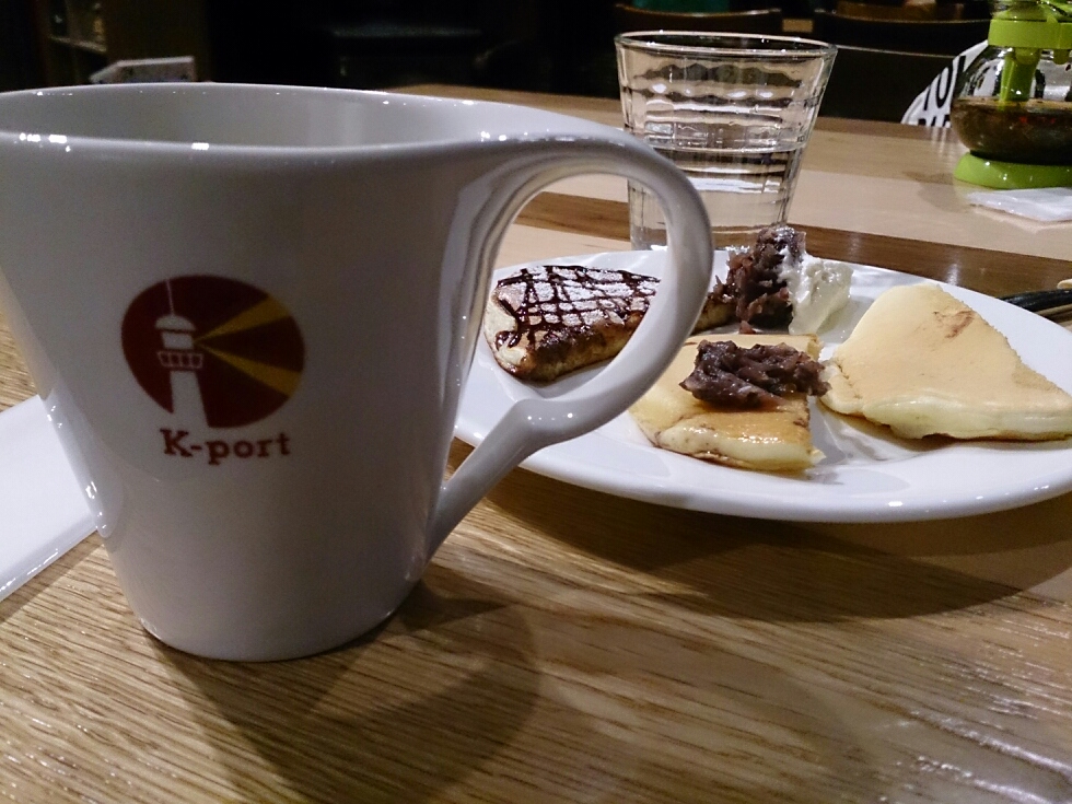 温泉の後は、渡辺謙さんのお店K-portで、謙さん自慢のパンケーキを食べながらコーヒーブレイク。