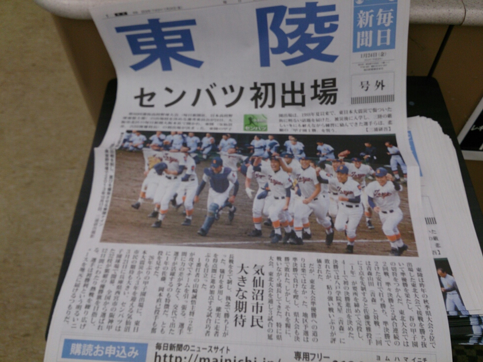 新聞を読んでいたら東稜高校が甲子園に出場するという記事が載っていて驚いた。