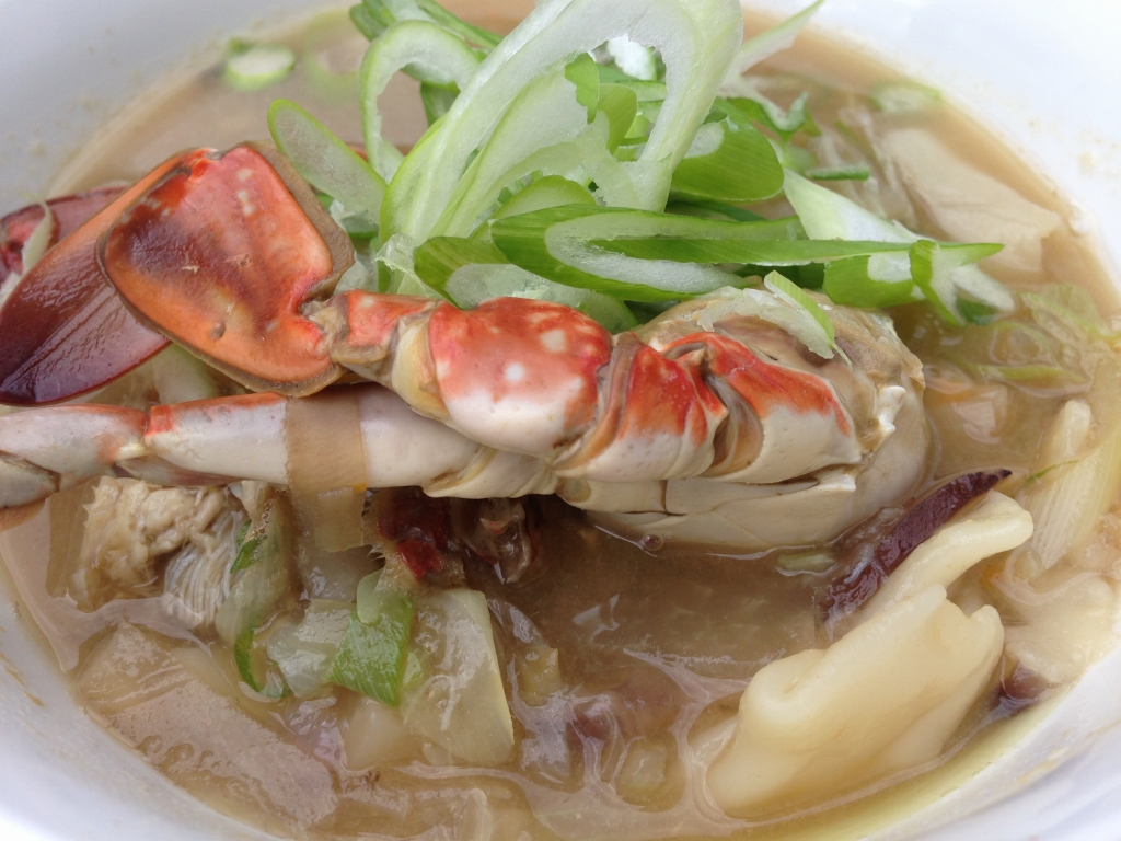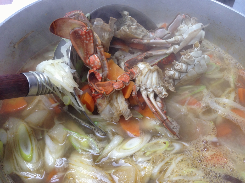 ワタリガニをぜいたくに使い、天然ダシが効いた美味しい“はっと汁”を提供しました。
