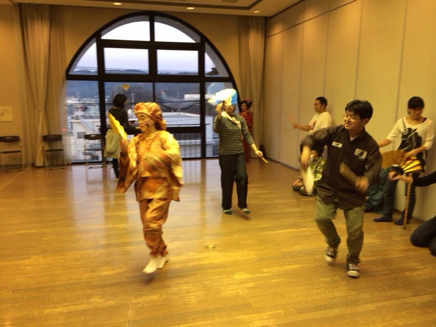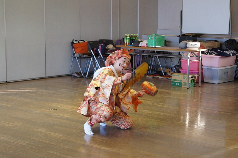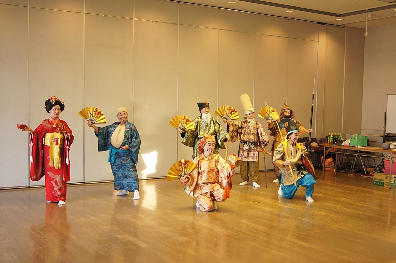 最後は、全員が顔にヒゲを描く化粧をして、小道具も貸して頂き、みんなで七福神舞を踊りました。参加者全員が、汗だくになりながらも、終始和やかな雰囲気の中であっという間の3時間でした。 終わった後も「みぃさいなぁ~、みぃさいなぁ~」のフレーズが耳から離れず、体が自然に動いてしまいます。