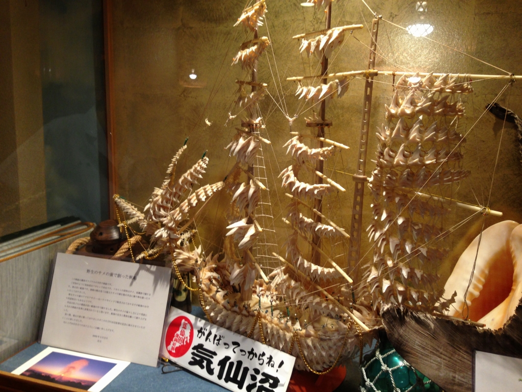 また、サメの歯でつくられた船も展示されていました。