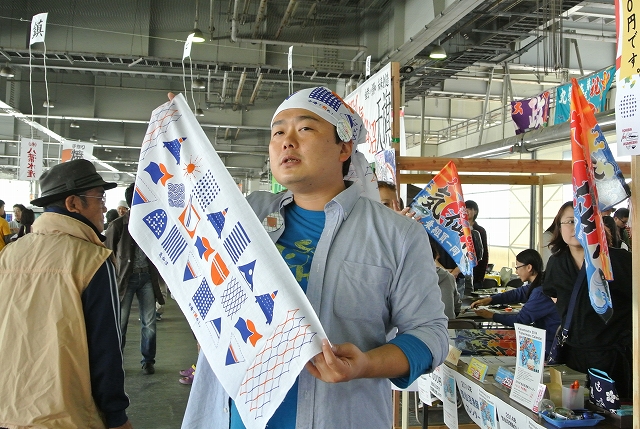 このほか、会場では市内の水産加工会社や菓子店による物産コーナーもあるので、お買い物も楽しめます。気楽会でも、朝めしイベントに合わせた「オリジナル手ぬぐい」、市内の観光名所などを写真付で紹介した「記念バッチ」を販売しますよ♪ぜひ、多くの皆さんの来場をお待ちしてます。
