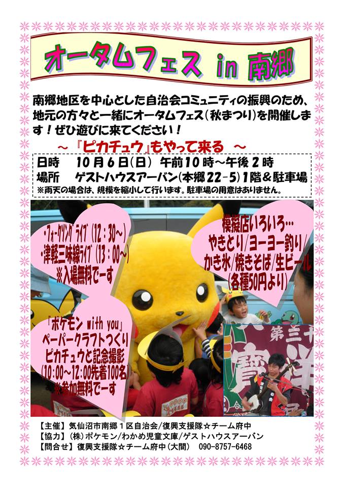 で、この週末は、東京の府中市からやってくる支援団体「復興支援隊☆チーム府中」皆さんが主催するイベントのお手伝いをする予定です。