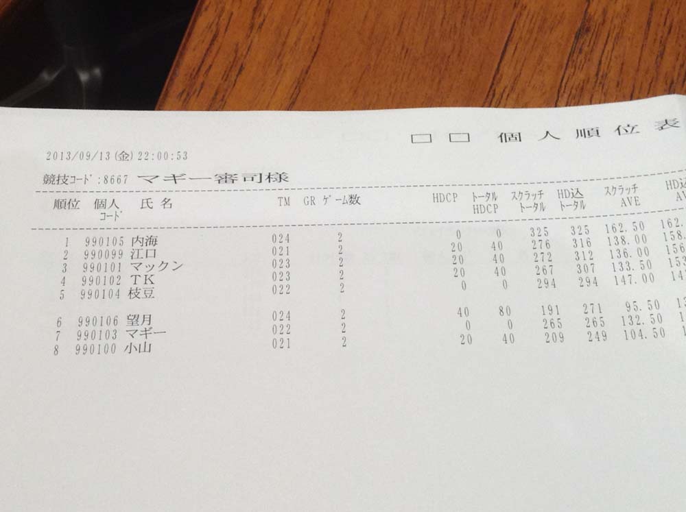 以上、1ゲーム目は144なのに2ゲーム目が80だったアキヒロでした。