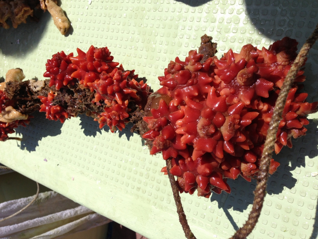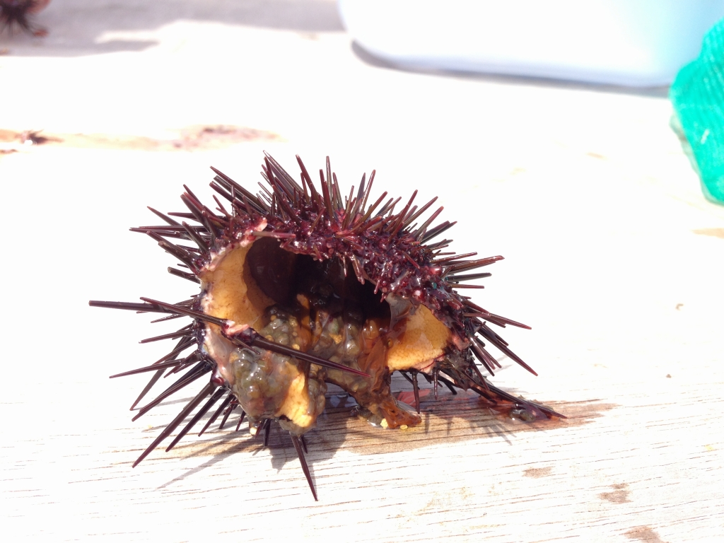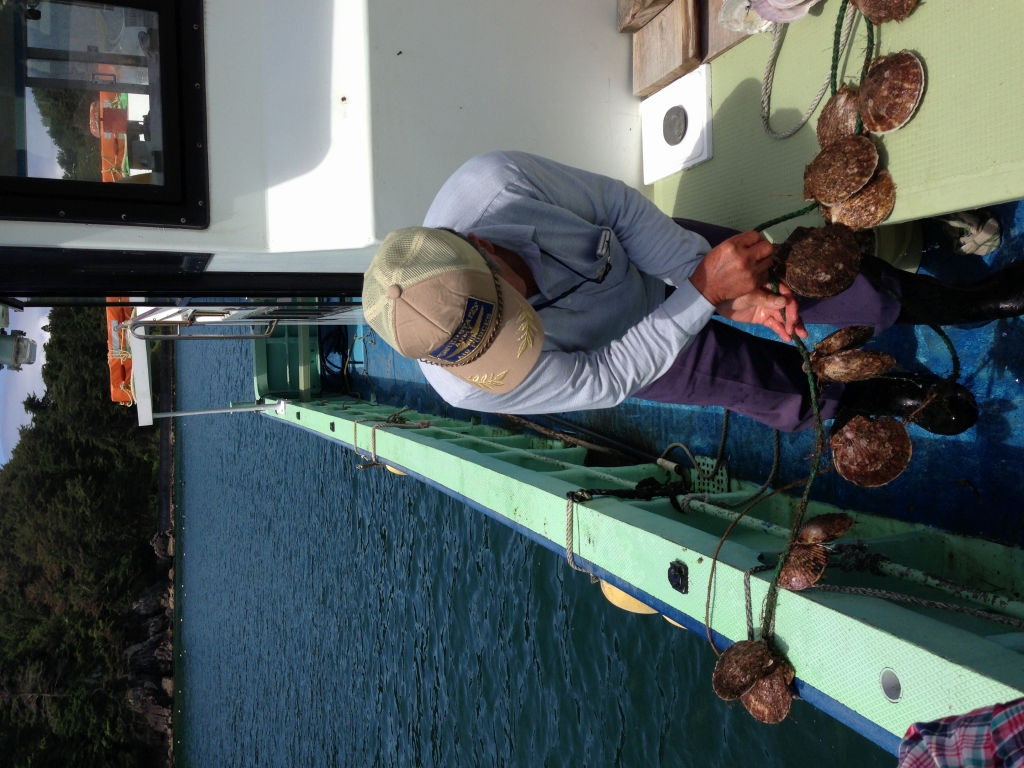 ホタテやウニ(岸壁に張り付いていたもの)を食べたり、ホヤの成長を確認をしたり。