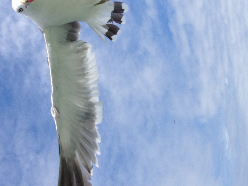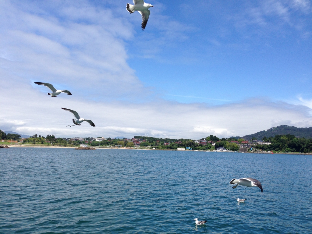 青空とウミネコ。大島はゆっくりとした時間が流れます。