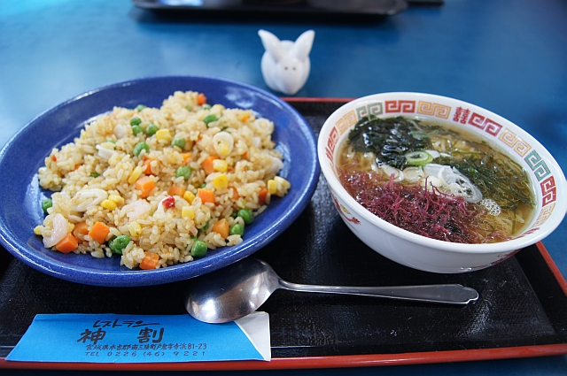 海賊チャーハンと磯(海藻)ラーメンのセットを注目。店員のお姉さんの笑顔が素敵でした。