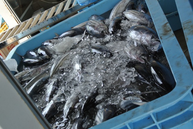 カツオの水揚げに沸く魚市場